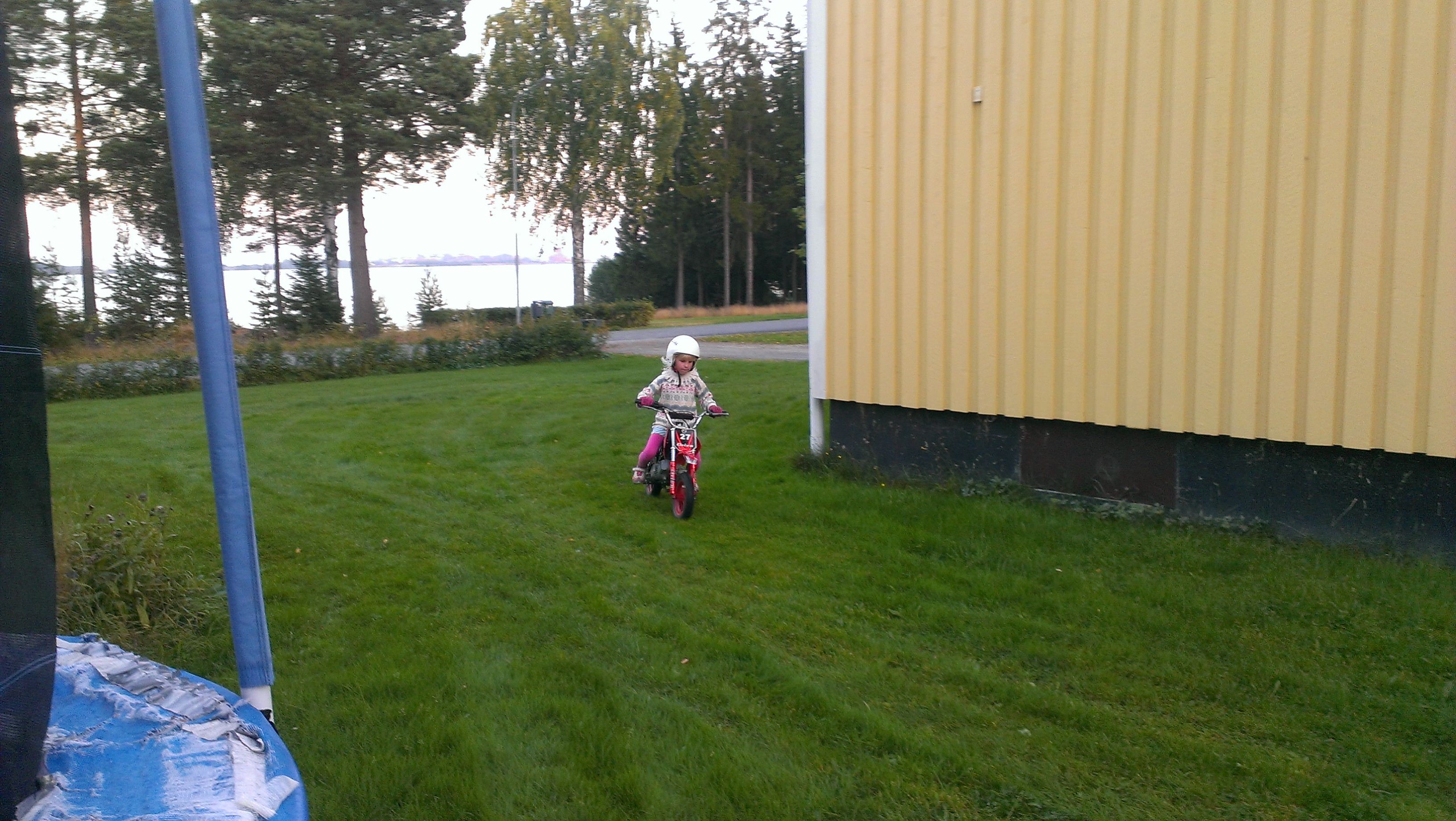 Tina lyckades köra uppför sandtaget ett par gånger, och det är inte illa pinkat med tanke på hennes erfarenhetsnivå! Hon var rätt slut efter en dag i sandlåda och med stalpkörning..