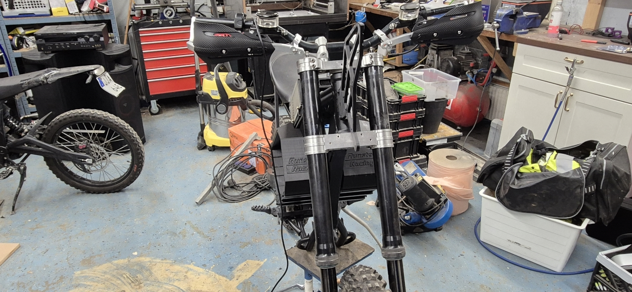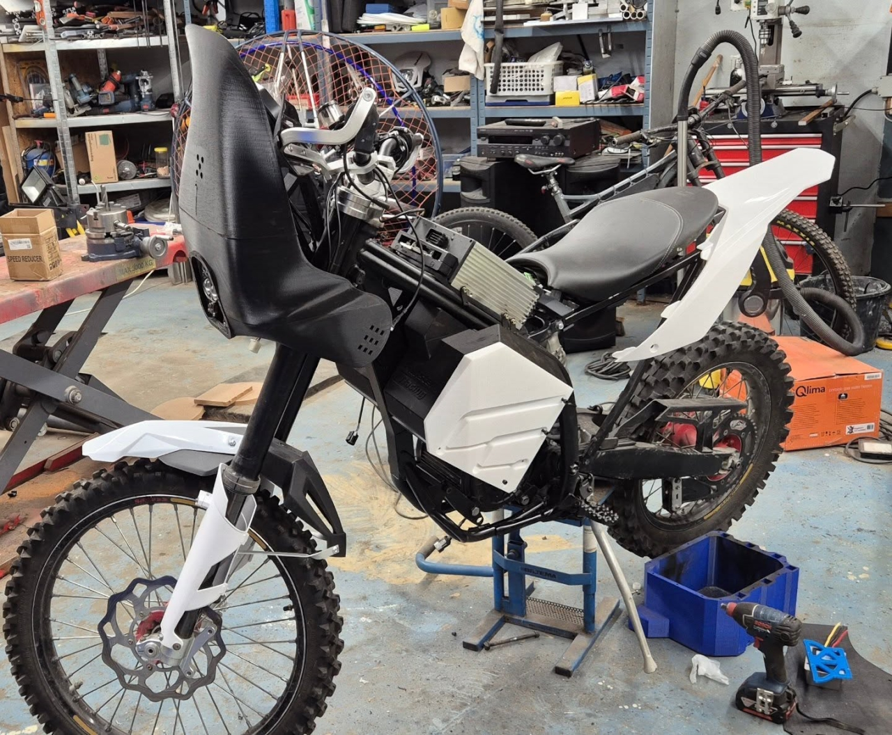 At about this time I figured I might just as well put a windscreen on the bike as it’s going to be wide and heavy like an offroad bike anyways.. so I did some cad, removed the front part of the bike and..