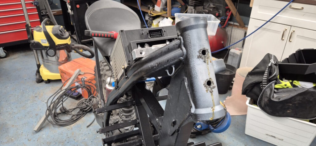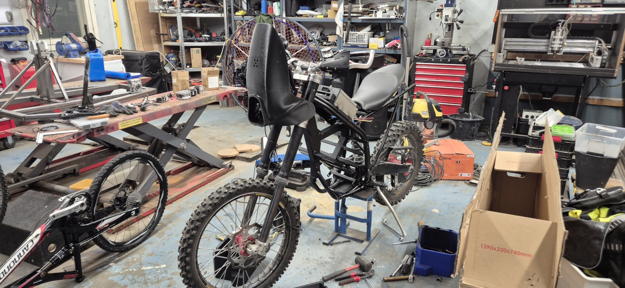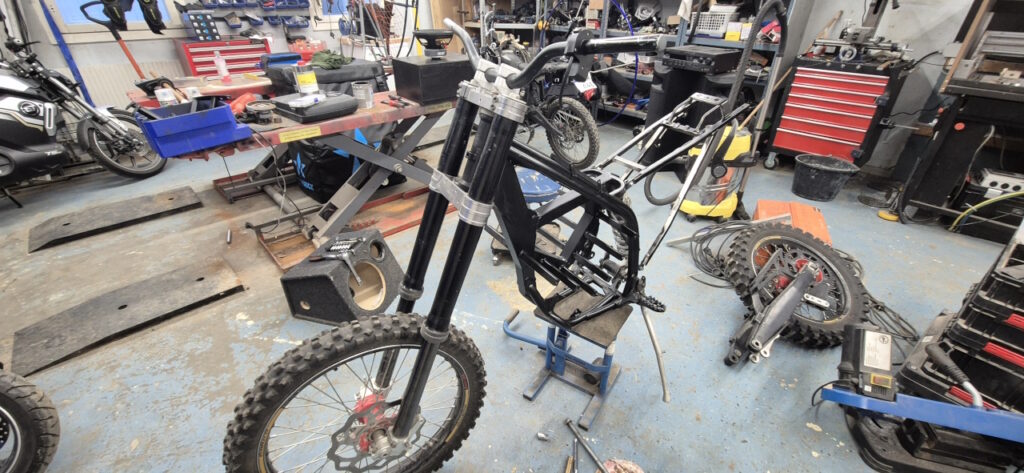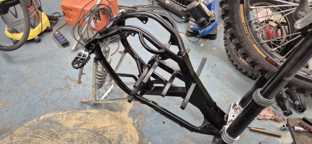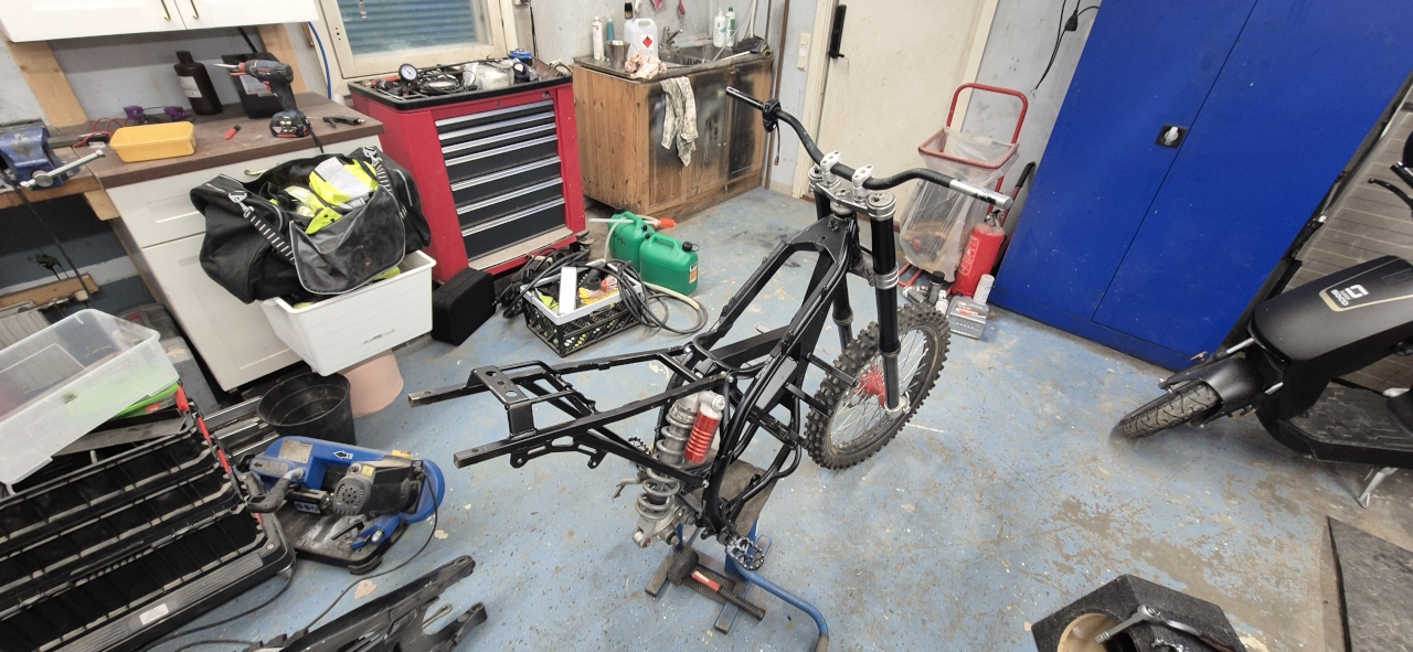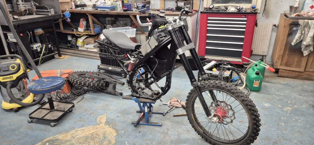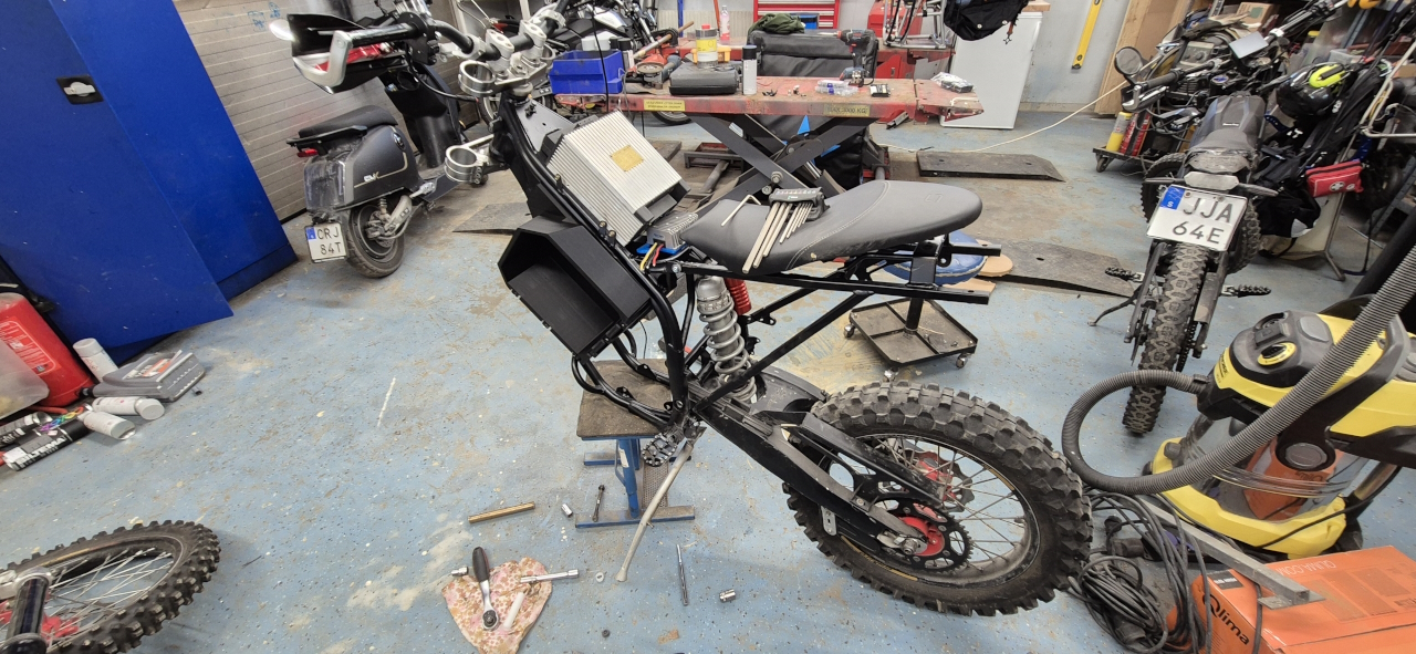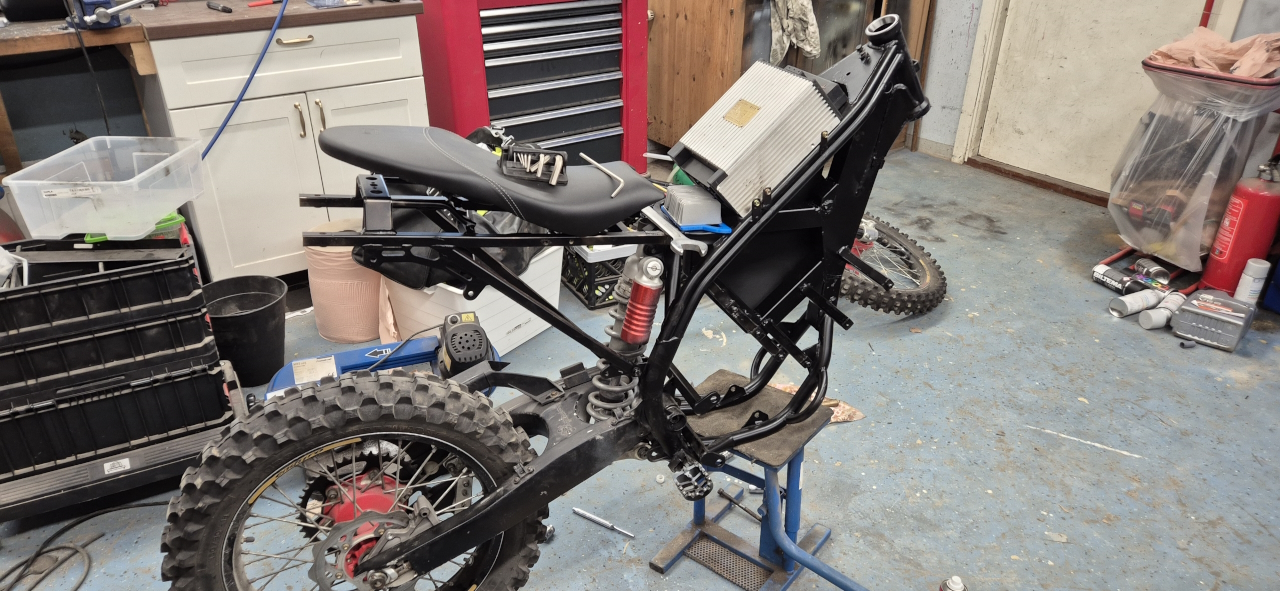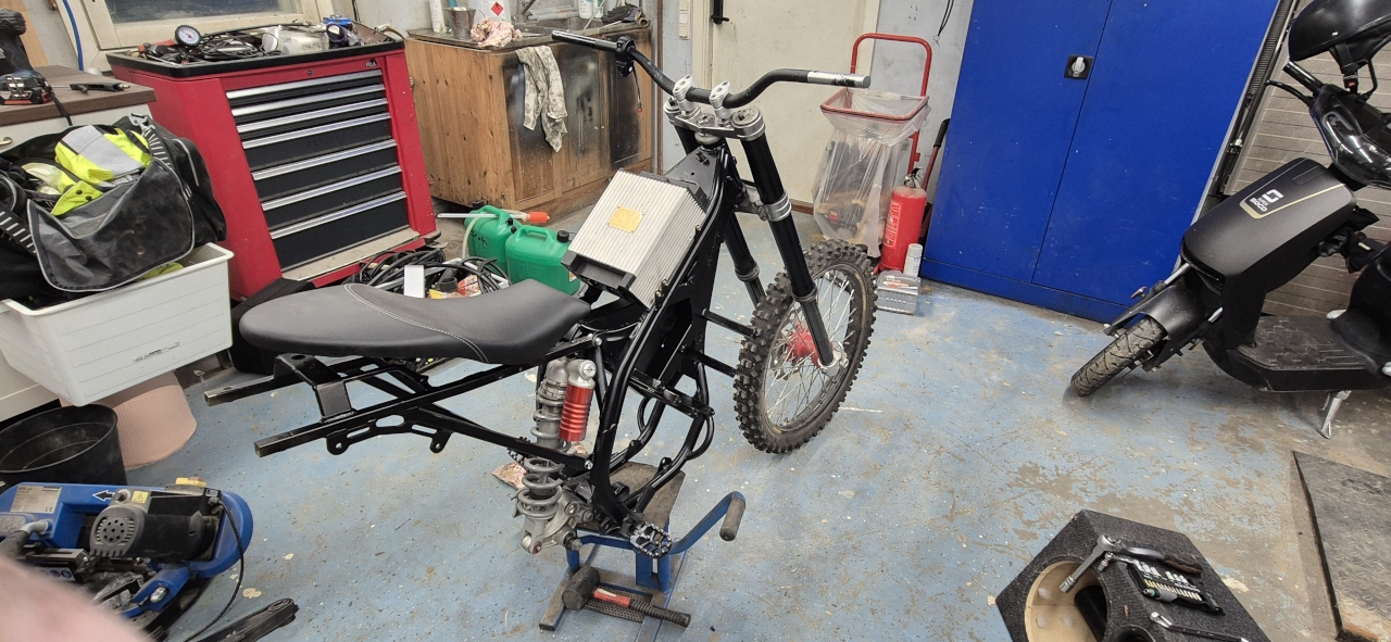 Now all I have to do is wiring, brakes, lights, chain, controller setup and some cover plates under the seat… then I think we’re good for a test drive.. Let’s see if we’re there before next update.. 🙂