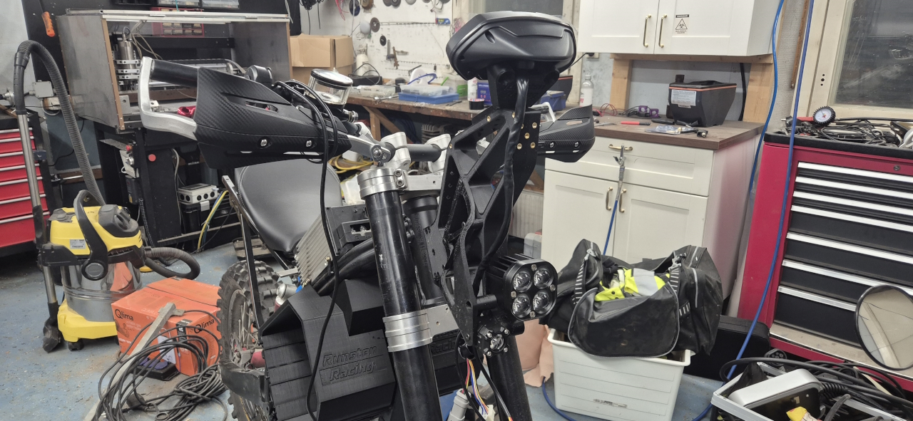 Not perfect, but it’ll do for now. Got a low front fender that I made a mount for and I’ve made custom brackets to secure the seat on the bike… The battery box covers will be white with some black carbon fiber inlays, just for the looks of it and some rigidity.